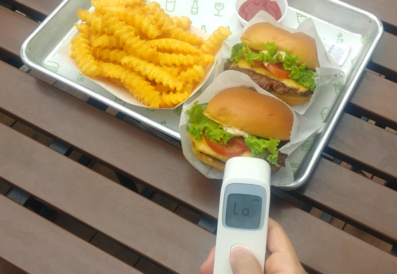 Lets see if the hamburger is hot. 40 degrees. Not bad.