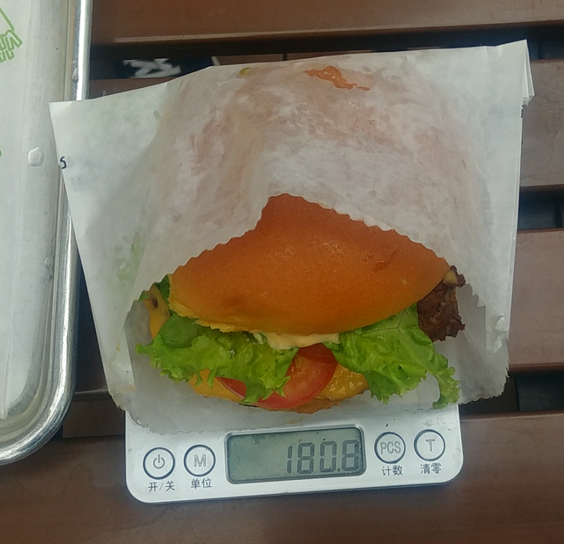 The burger weighs 180g, and the patty is 89g, almost exactly the weigh of two McDonald’s patty (45g) Seems great for Shake Shack, until you realize McDonald’s sell double cheese burgers for 1/3 the price. But quantity isn’t everything. Plus the 89g includes the stickiest cheese on earth and which refused to break away from the patty